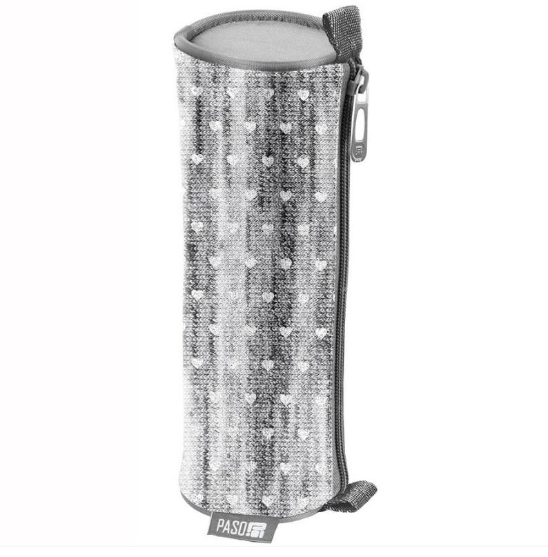 Piórnik tuba szary w serca. Produkt składa się z jednej głównej komory zapinanej na zamek błyskawiczny. Idealnie pomieści wszelkie niezbędne artykuły piśmiennicze oraz przybory szkolne. Stanowi idealny dodatek do klasycznych piórników, które nie pomieszczą dodatkowych aksesoriów szkolnych, takich jak temperówka, klej, cyrkiel, korektor czy markery. Tuba może być użyta także jako etui czy mała kosmetyczka. W Paso dbamy, aby nasze piórniki były funkcjonalne, lekkie i jednocześnie pakowne.