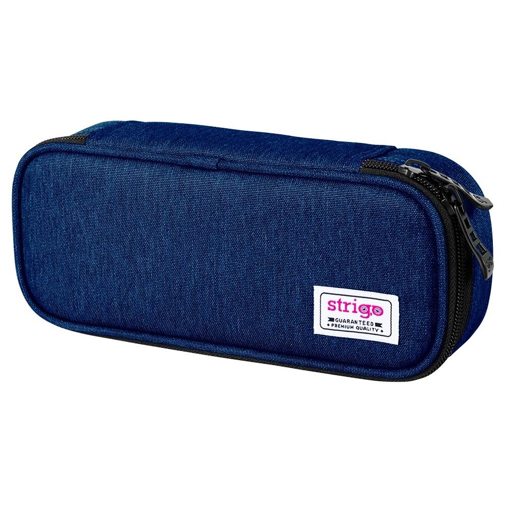 Pojemny piórnik typu prostokąt. Wykonany z wysokiej jakości materiału w granatowym kolorze.