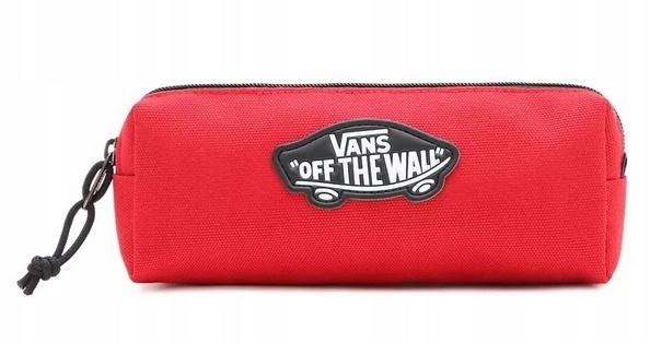 Piórnik w kolorze czerwonym zdobiony subtelną, czarną naszywką z logo marki. Producent zadbał o wysoką jakość użytych materiałów i precyzję wykonania.
