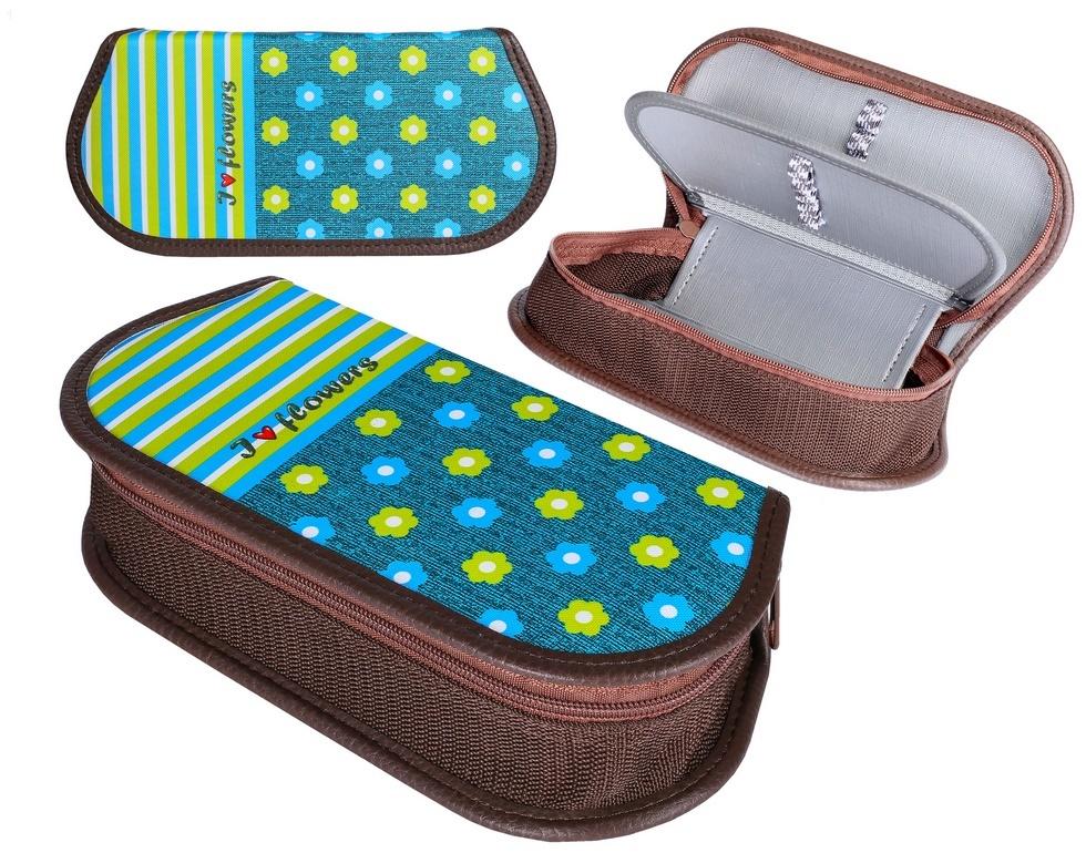 Piórnik typu kuferek sztywny dostępny w 2 kolorach, ozdobiony nadrukiem przedstawiającym kwiaty wykonanym w technologi termosublimacji. W środku klapka z gumkami na długopisy i przestrzeń luźna do wykorzystania. Wyrób zamykany na zamek błyskawiczny.