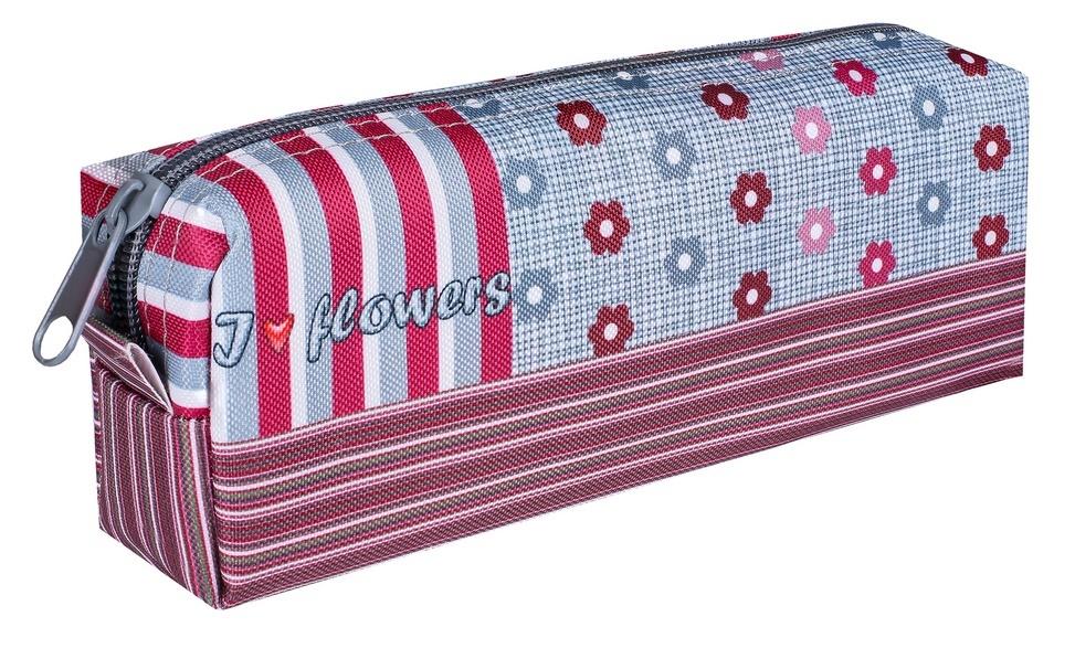 Piórnik typu klocek dostępny w 2 wersjach kolorystycznych. Wyrób ozdobiony nadrukiem przedstawiającym kwiaty wykonanym metodą termosublimacji. Wyrób zamykany na zamek błyskawiczny.