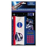 Zestaw zawiera: - miękki piórnik na zamek - notesik - kalkulator z podstawowymi funkcjami - ołówek - gumka do mazania - temperówka