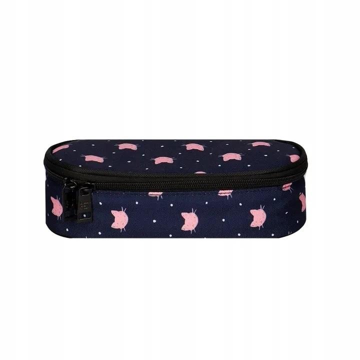 Usztywniany, pojemny piórnik z wewnętrznym organizerem z gumkami oraz zapinaną kieszonką. Mieści wszystkie niezbędne przybory szkolne.