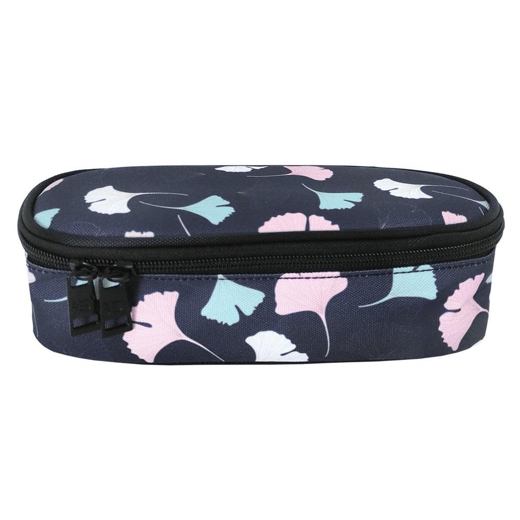 Piórnik szkolny z kolekcji Cin&Chilla w formie saszetki ( wzór: błękitne i różowe liście miłorzębu japońskiego na grafitowym tle).Posiada dwie zapinane na zamek komory. Pomieści wszystkie niezbędne przybory szkolne. Wymiary: 23x10xh6,5cm.