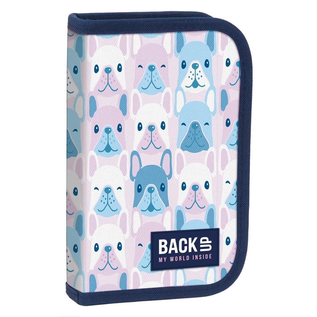 Co czyni buldogi francuskie tak wyjątkowymi? To bardzo czułe i wrażliwe psy, nie lubią ruchu i są bardzo przyjazne. Dlatego są idealnymi towarzyszami człowieka. Może dlatego są tak lubianym motywem w designie od kilku lat. Tym razem słodkie buldożki odkryjecie w nowym, pastelowym wydaniu, uzupełnione mocnymi akcentami ciemnego granatu, który nadaje całości bardziej zdecydowanego charakteru. To ulubiona pozycja wszystkich wielbicielek słodkich frenchie. Jednokomorowy piórnik BackUP z wyposażeniem posiada: