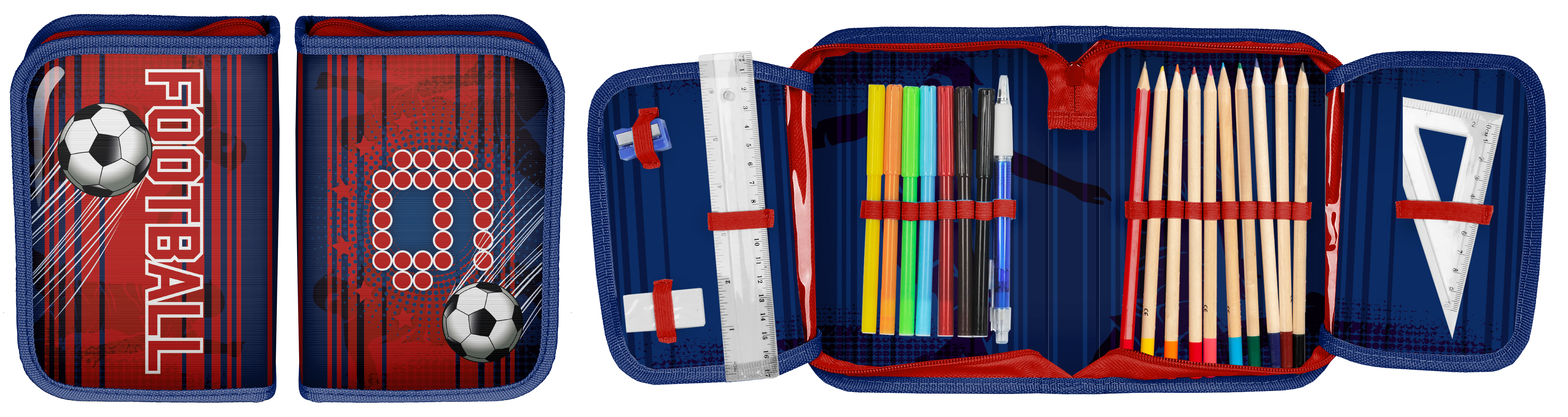 Piórnik z wyposażeniem Football granatowo-czerwony