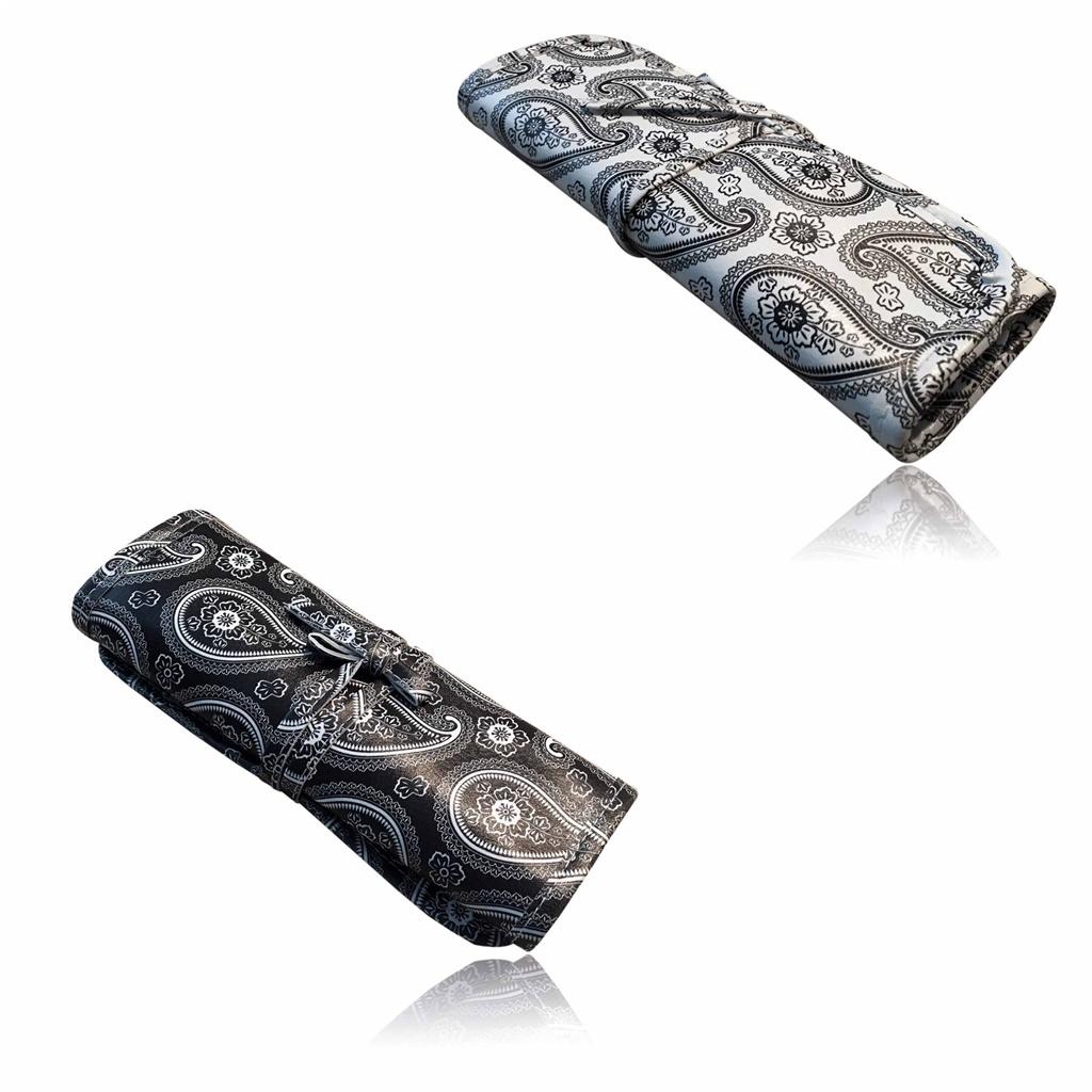Piórnik zawijany, wykonany z ekoskóry, w oryginalnej kolorystyce, zawiązywany, wnętrze piórnika wyszyte jest przegródkami różnej szerokości, idealny zarówno jako piórnik który pomieści wiele przyborów do pisania jak i etui na pędzle dla dziewcząt uwielbiających wizaż.