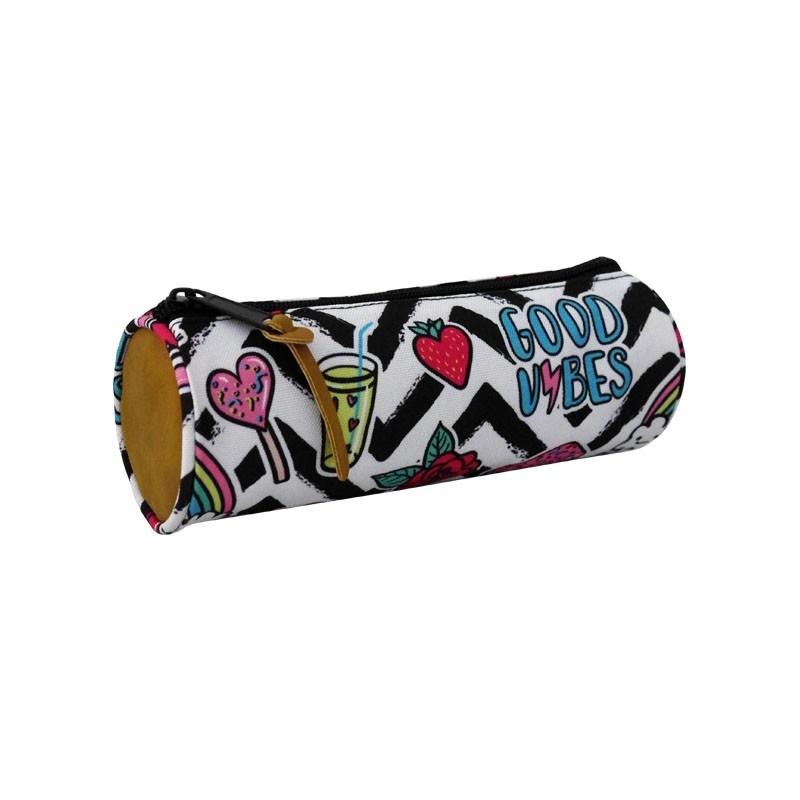 Piórnik saszetka zapinany na zamek. Modny nadruk połączony z wykończeniem ze skóry ekologicznej przypadnie do gustu miłośnikom stylowych przedmiotów. Saszetka może również być wykorzystana jako podręczna mała kosmetyczka.