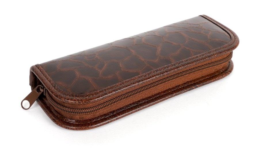 Piórnik skórzany na 8 długopisów, błyszcząca zmywalna powierzchnia, wymiary piórnika 19,5 x 7 x 3,5 cm (w x h x d), bez wyposażenia.