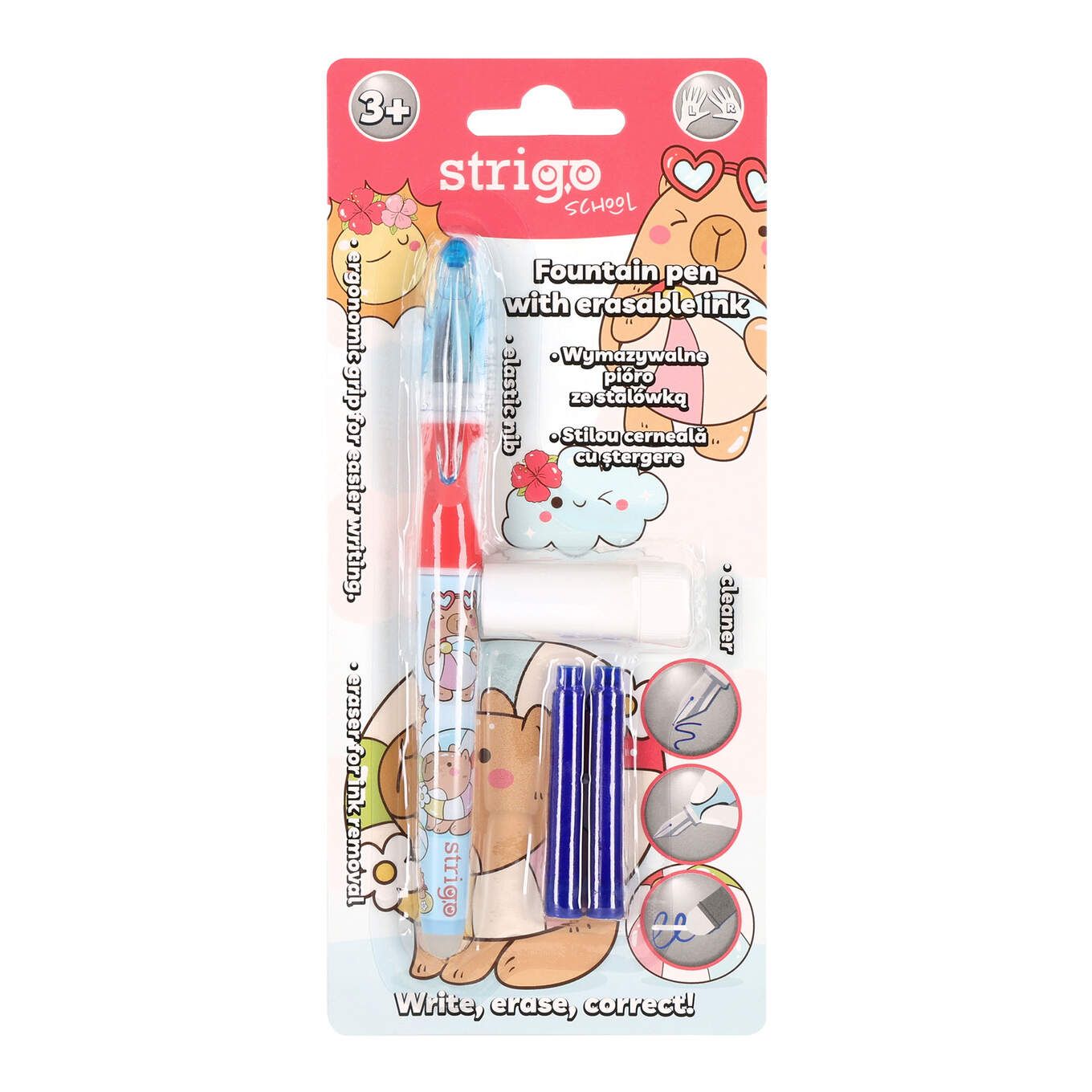 Opakowanie Pióro dla dzieci wymazywalne Kapibara niebieskie