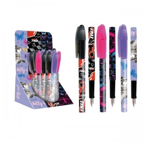 Pióro wieczne na naboje dla leworęcznych, o oryginalnym, atrakcyjnym kształcie i wykończeniach. Grubość pióra dostosowana do dłoni dziecka.