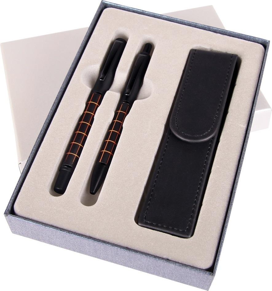 Pióro + długopis Dorian w etui ES pomarańczowy