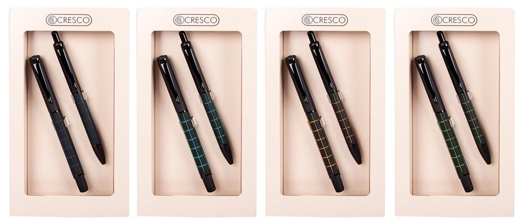 Model zestawu piśmiennego DORIAN w ponadczasowej, czarnej kolorystyce z kolorową kratą. Kolekcja obejmuje pióro wieczne ze stalówką irydową oraz długopis. Pióro wieczne ze stalówką irydową zasilane standardowymi nabojami atramentowymi. Długopis posiada pstrykany system wysuwania wkładu wielkopojemnościowego typu Zenith. Zestaw zapakowany jest w etui prezentowe - idealne na prezent.