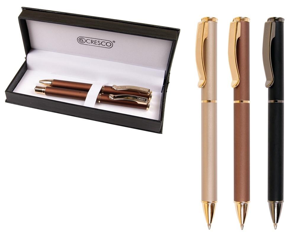 Pióro ze stalówką oraz długopis zapakowany w eleganckie etui. Kolor niebieski, grubość lini pisania długopisu 1.0mm.