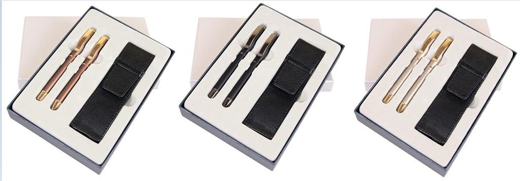 Ekskluzywny metalowy długopis z miejscem do zadruku o wymiarach: 8 x 45 mm. Pióro wieczne z solidną stalówką na zwyczajne naboje. Całość zapakowana w etui. Dodatkowo w zestawie poręczny piórnik.