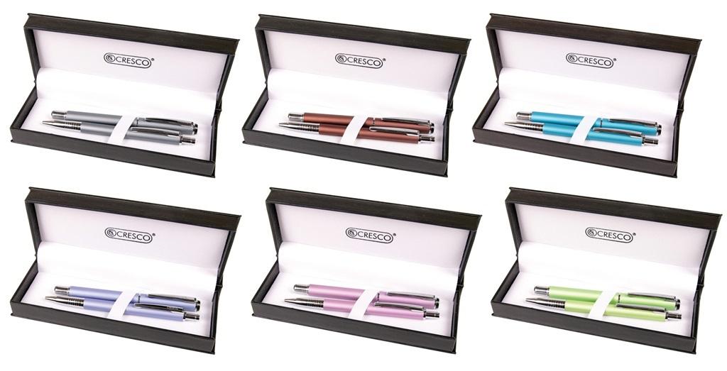 Klasyczny model znanego już zestawu piśmiennego Winner w kolorystyce pastelowej. Kolekcja obejmuje pióro wieczne z stalówką irydową oraz długopis z wkładem wielko pojemnościowym, niebieski 1mm. Zarówno pióro wiecznie jak i długopis pakowane są osobno w dpy 12szt natomiast jako zestawy w etui 28, 32, 34, 38, ES oraz ES/37