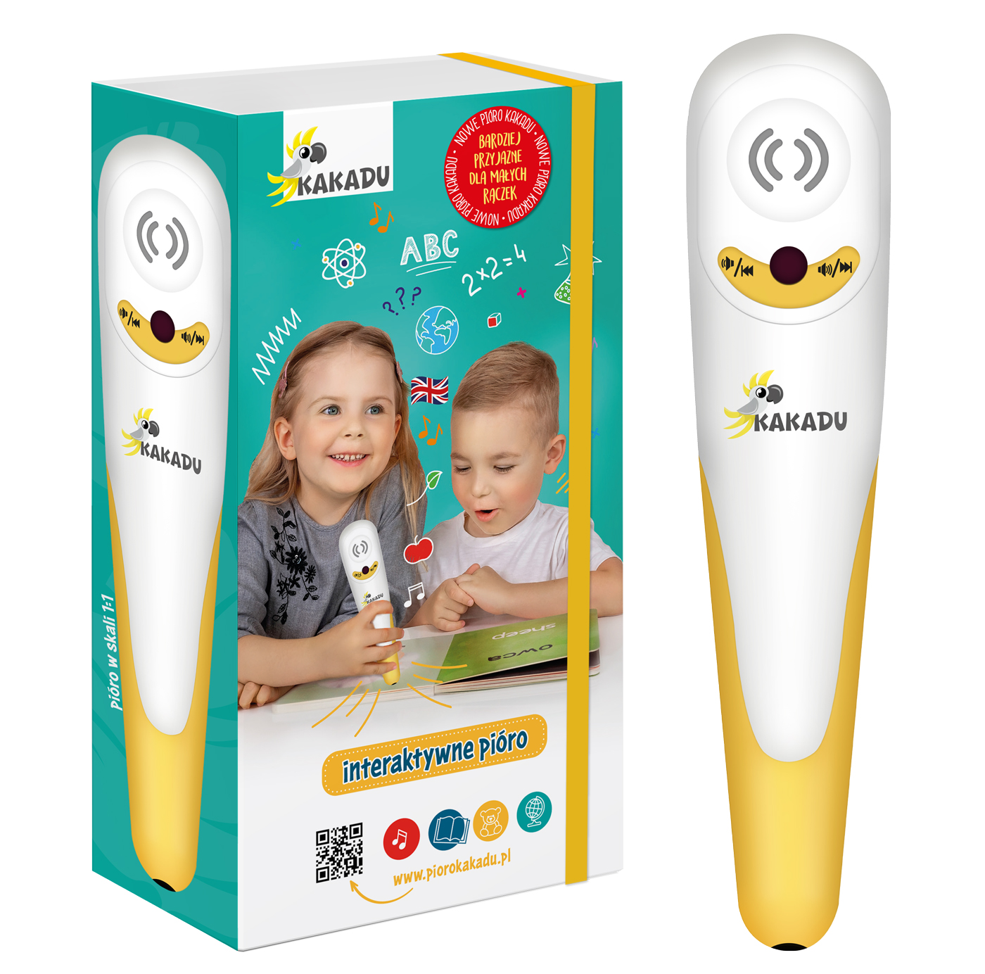 Interaktywne pióro KAKADU to wielofunkcyjne urządzenie, które odczytuje teksty i dźwięki zakodowane na stronach książek. To część innowacyjnego systemu nauki i zabawy w jednym. Dzięki niemu spotkanie z książką staje się prawdziwą przygodą. Teksty, odgłosy otoczenia, piosenki, polecenia, ciekawostki w nowatorski sposób rozwijają zmysły, pobudzają wyobraźnię, pomagają poznawać świat i języki obce. Pióro KAKADU wspiera proces nauki i kreatywność dziecka. To bardzo proste w obsłudze urządzenie zadziwia szerokim zakresem funkcji.