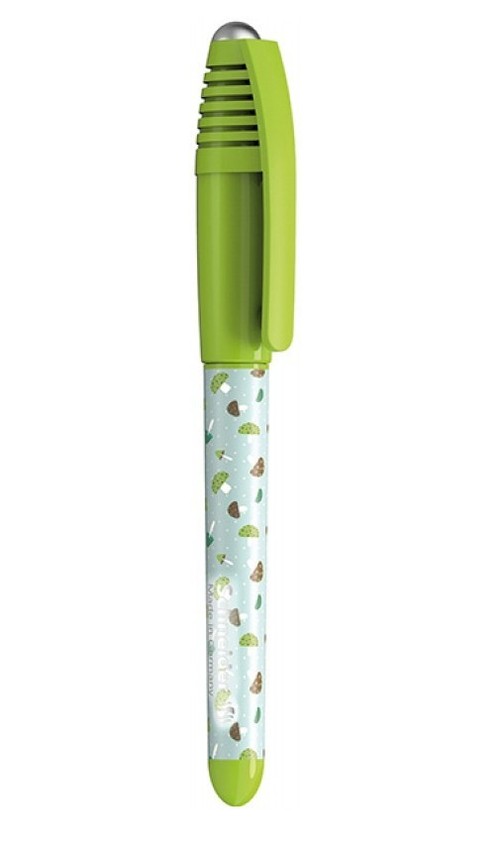 pióra kulkowe w miniaturowym formacie stalówka oraz końcówka pisząca ze wzmocnionej, nierdzewnej stali gumowany uchwyt do uzupełniania klasycznymi nabojami zapasowymi lub kartridżami 852 zamykana zatrzaskowo skuwka z klipem dopasowane zarówno dla prawo- jak i leworęcznych kod kreskowy umieszczony na każdym produkcie grubość linii pisania: M kolor atramentu: niebieski kolor obudowy: zielony