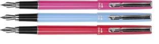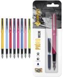 Pióro wieczne z eleganckim wykończeniem, klips, stalówka oraz obrączka korpusu pokryte wysokiej jakości powłoką niklową, stalówka zakończona irydową kulką dla zapewnienia doskonałej jakości i łatwości pisania, wymienne naboje atramentowe. Mix kolorów. Kolory wysyłane losowo.