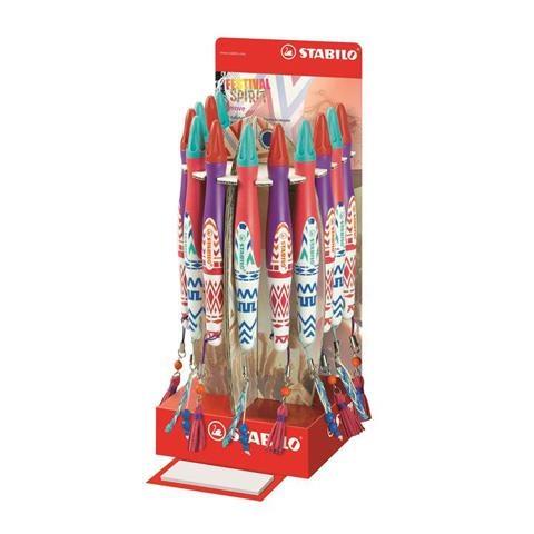 Ergonomiczne pióro kulkowe STABILO 's move z limitowanej serii Festival Spirit z modnymi dodatkami. Dostępne w 2 kombinacjach kolorystycznych. Kolor tuszu niebieski. Grubość linii 0,5 mm. Display 12 szt.