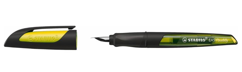 STABILO EASYbuddy to pióro wieczne zaprojektowane z myślą o dzieciach i młodzieży. Posiada uniwersalny, ergonomiczny uchwyt wykonany z materiału antypoślizgowego. Jest bardzo wygodne, dzięki czemu dłoń nie męczy się podczas pisania. Specjalne okienko pozwala kontrolować stopień zużycia naboju. Posiada stalówkę typu M. Dostępny jest w 13 kombinacjach kolorystycznych. Kolor czarny/limonkowy.