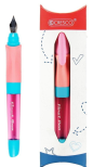 Cechy: - gumowy i profilowany uchwyt ułatwiający prawidłowe trzymanie pióra - zasilane standardowymi nabojami atramentowymi - pióro wieczne posiada stalówkę irydową o grubości M. Wzór widoczny na zdjęciu. Pióro zapakowane w kartonowe etui z zawieszką.
