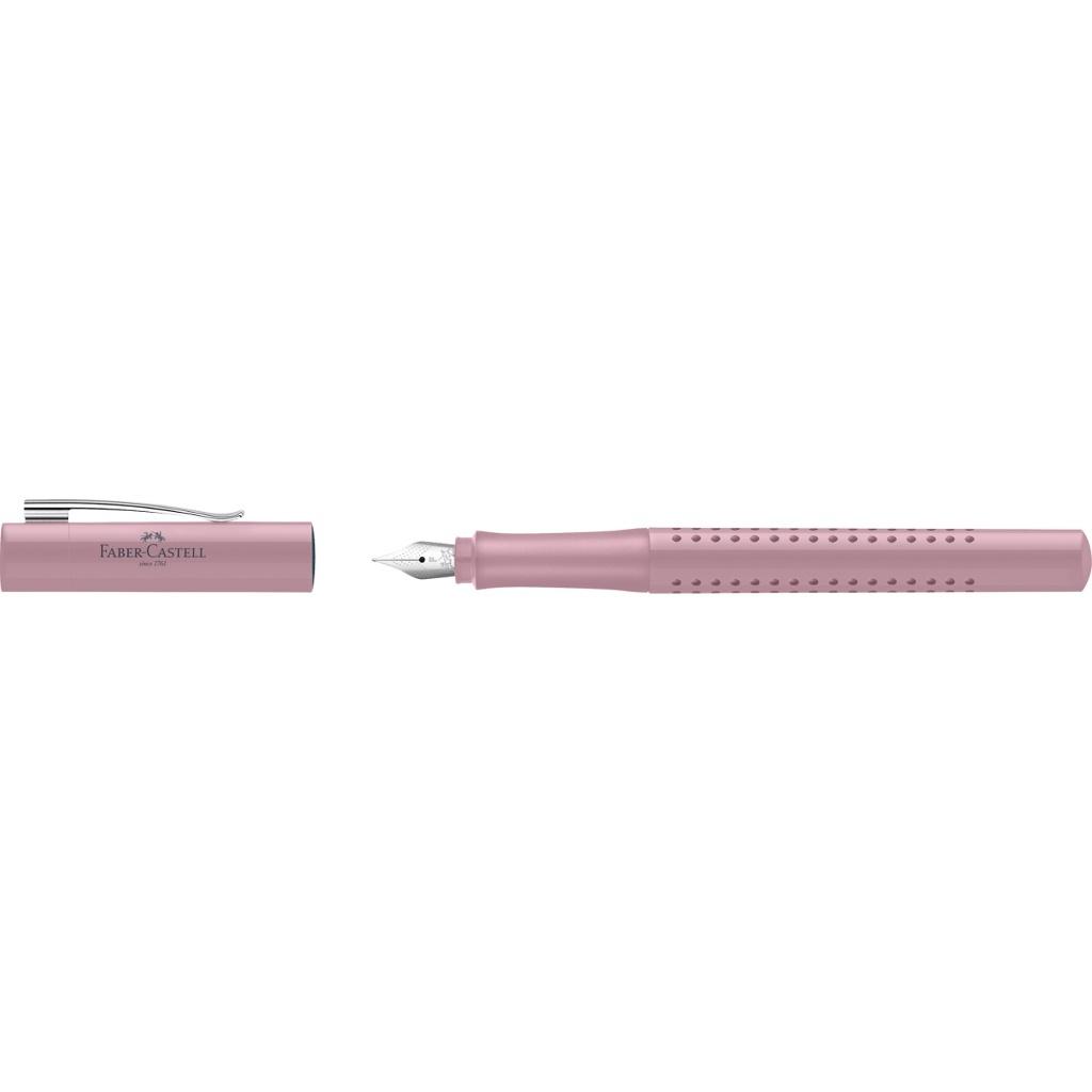 Pióro wieczne z serii Grip 2010 Harmony Faber-Castell w kolorze różowym (rose shadows). Zaprojektowane dla niestrudzonego pisania, przyciąga wyjątkowym designem i modnymi kolorami. To połączenie estetyki harmonijnego połączenia kolorów i użyteczności. Ergonomiczny trójkątny kształt, miękka strefa uchwytu i charakterystyczna dla tej serii opatentowana strefa Grip zapewniają wysoki komfort i wygodę użytkowania. Doskonałe wyważenie zarówno bez jak i ze skuwką. Wyposażone w wysokiej jakości wytrzymałą stalówkę ze stali nierdzewnej w rozmiarze F (fine - cienka) z idealnym przepływem atramentu dla wyjątkowego komfortu pisania. Solidna, irydowa końcówka stalówki. Elastyczny metalowy klips na skuwce. Odpowiednie zarówno dla prawo- jak i leworęcznych. Do standardowych nabojów atramentowych.