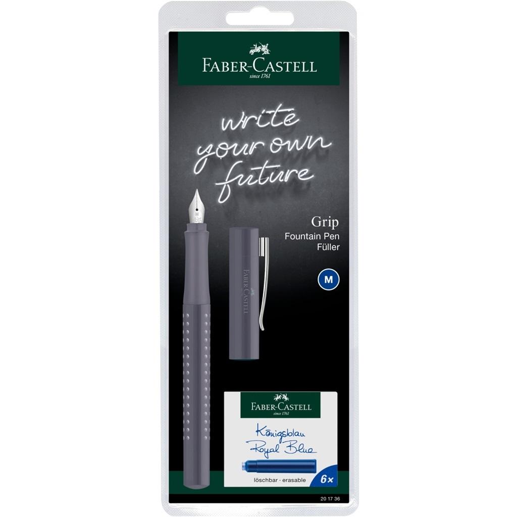 Pióro wieczne z serii Grip 2010 Harmony Faber-Castell mix kolorów + naboje w kolorze niebieskim (royal blue) 6 szt. w opakowaniu blistrowym. Zaprojektowane dla niestrudzonego pisania, przyciąga wyjątkowym designem i modnymi kolorami. To połączenie estetyki harmonijnego połączenia kolorów i użyteczności. Ergonomiczny trójkątny kształt, miękka strefa uchwytu i charakterystyczna dla tej serii opatentowana strefa Grip zapewniają wysoki komfort i wygodę użytkowania. Doskonałe wyważenie zarówno bez jak i ze skuwką. Wyposażone w wysokiej jakości wytrzymałą stalówkę ze stali nierdzewnej w rozmiarze M (medium - średnia) z idealnym przepływem atramentu dla wyjątkowego komfortu pisania. Solidna, irydowa końcówka stalówki. Elastyczny metalowy klips na skuwce. Odpowiednie zarówno dla prawo- jak i leworęcznych. Do standardowych nabojów atramentowych.
