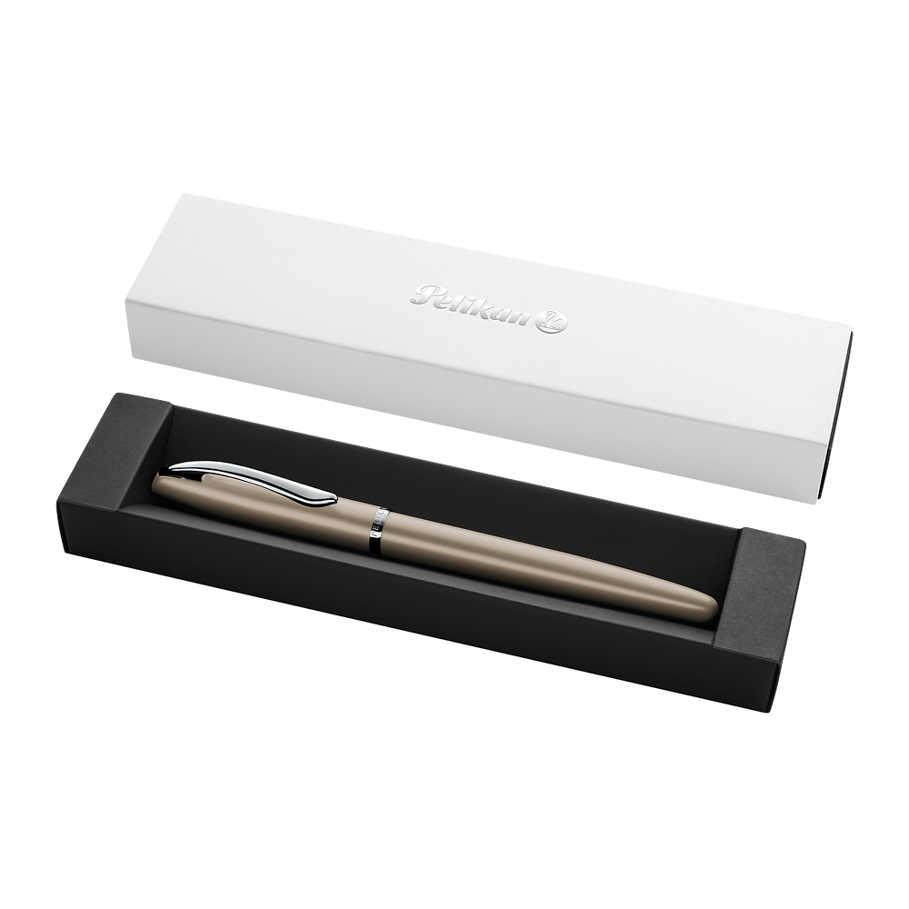 Perłowa powierzchnia nadaje pióru elegancki, ponadczasowy charakter Stalówka M ze stali nierdzewnej z końcówką Iridium zapewnia płynne i trwałe pisanie Możliwość zastosowania jednego długiego lub dwóch krótkich nabojów atramentowych Metalowe elementy nadające się w 100% do recyklingu połączenie stylu i odpowiedzialności Klips sprężynowy w kształcie dziobu pelikana podkreśla jakość i renomę marki Zamykanie na skuwkę gwarantuje bezpieczeństwo i wygodę użytkowania