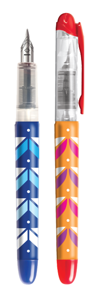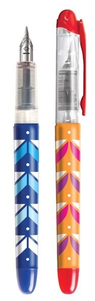 Pióro wieczne wyposażone w standardowy nabój atramentowy koloru niebieskiego. Opakowanie: display 20 sztuk w dwóch wariantach kolorystycznych obudowy: niebieskim i czerwonym.