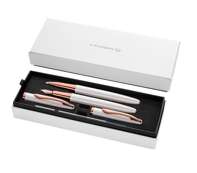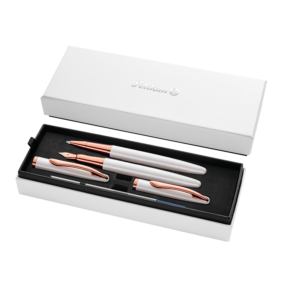 Zestaw Pelikan Jazz Noble Elegance łączy ponadczasowy styl i praktyczną funkcjonalność zawiera pióro wieczne oraz pióro kulkowe, które razem tworzą idealne narzędzie dla miłośników komfortowego pisania. Oba instrumenty mają metalową obudowę z subtelnym, perłowym wykończeniem, a wszystkie ich części są w 100% przystosowane do recyklingu. Stalówka pióra wiecznego (rozmiar M) gwarantuje płynny ruch po papierze, natomiast pióro kulkowe zapewnia wygodę i szybkość pisania dzięki zastosowaniu nabojów atramentowych kulkowych. Charakterystyczny sprężynowy klips w kształcie dziobu pelikana oraz dopracowane detale czynią ten zestaw nie tylko funkcjonalnym, ale i niezwykle stylowym idealnym na prezent lub do codziennego użytku.