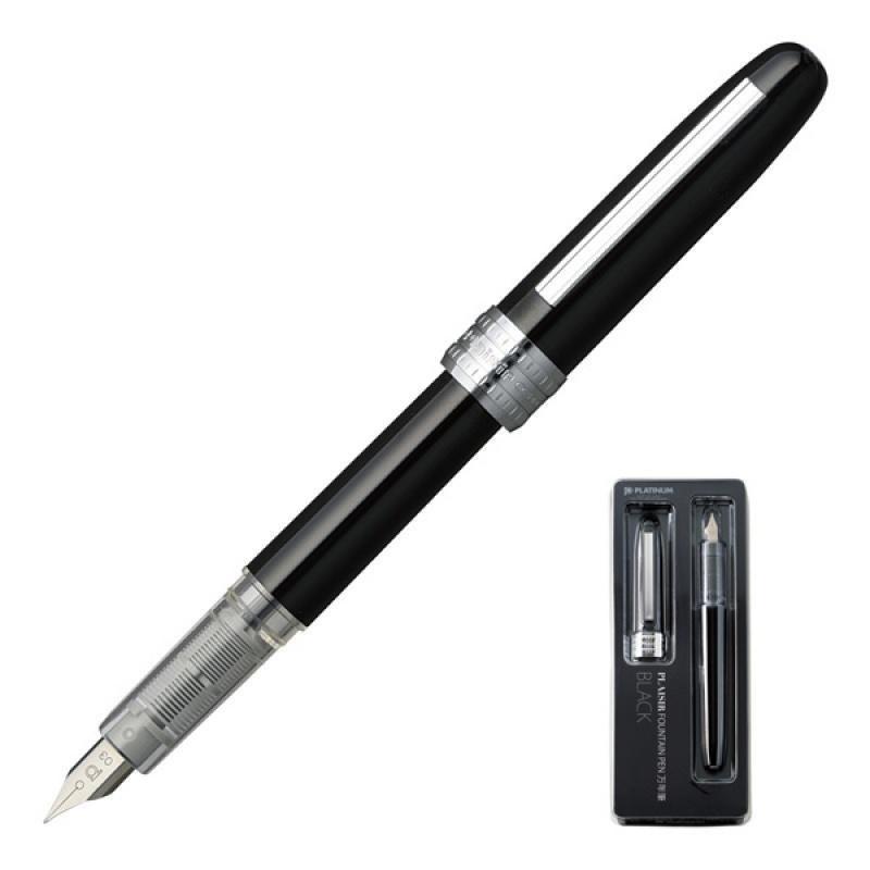 Pióro wieczne Platinum Plaisir posiada skuwkę z systemem Slip & Seal, która zapobiega wysychaniu atramentu, umożliwiając płynne pisanie nawet po nieużywaniu pióra wiecznego przez cały rok. Korpus wykonany jest z aluminium w czarnym błyszczącym kolorze. Stalówka wykonana jest ze stali nierdzewnej. Pióro wieczne posiada nabój atramentowy Platinum na start. Pakowane na blistrze.