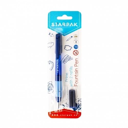 Pióro wieczne STARPAK Prime o kształcie dostosowanym do dłoni dziecka, z wytrzymałą stalówką, wykonaną z wysokiej jakości materiału. Specjalnie wyprofilowana, antypoślizgowa strefa uchwytu zapewnia komfort i pomaga w nauce pisania Twojego dziecka. Zapoznaj się również z innymi produktami dedykowanymi biurze i szkole! W piórze znajduje się miejsce na zapasowy wkład, dzięki czemu Twojemu dziecku nigdy nie zabraknie atramentu w trakcie pisania. W zestawie dwa naboje wymienne. Zestaw pakowany na blistrze.