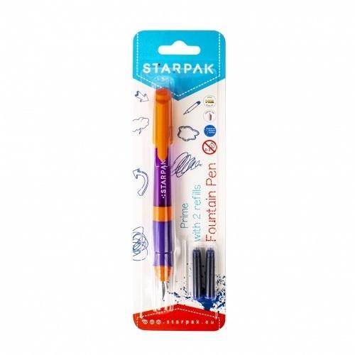 Pióro wieczne STARPAK Prime o kształcie dostosowanym do dłoni dziecka, z wytrzymałą stalówką, wykonaną z wysokiej jakości materiału. Specjalnie wyprofilowana, antypoślizgowa strefa uchwytu zapewnia komfort i pomaga w nauce pisania Twojego dziecka. Zapoznaj się również z innymi produktami dedykowanymi biurze i szkole! W piórze znajduje się miejsce na zapasowy wkład, dzięki czemu Twojemu dziecku nigdy nie zabraknie atramentu w trakcie pisania. W zestawie dwa naboje wymienne. Zestaw pakowany na blistrze.