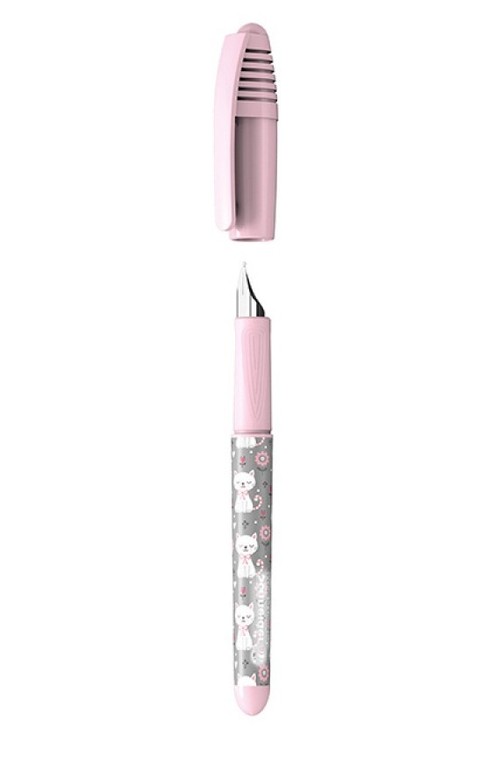 pióra wieczne w miniaturowym formacie stalówka oraz końcówka pisząca ze wzmocnionej, nierdzewnej stali gumowany uchwyt do uzupełniania klasycznymi nabojami zapasowymi lub kartridżami 852 zamykana zatrzaskowo skuwka z klipem dopasowane zarówno dla prawo- jak i leworęcznych kod kreskowy umieszczony na każdym produkcie grubość linii pisania: M kolor atramentu: niebieski kolor obudowy: różowy