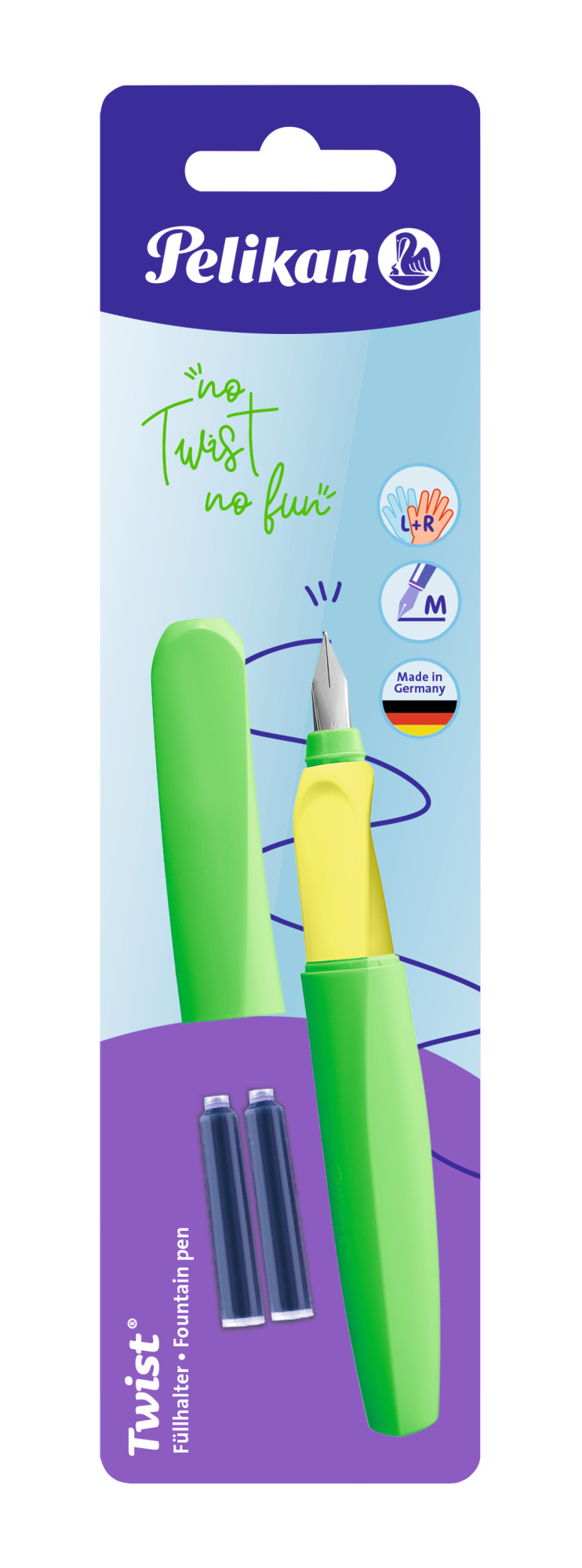 Pelikan Pióro wieczne Twist na naboje atramentowe, rozmiar M, neonowozielone, 2 naboje.