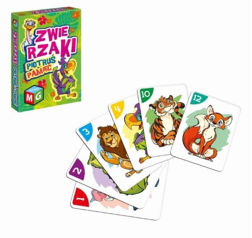 Piotruś i Pamięć to 25 kart pozwalających grać w dwie gry rozwijające spostrzegawczość i zapewniające dużo dobrej zabawy ich uczestnikom.Piotruś - karty dobiera się w pary.Wszystkie karty mają parę, poza jedną - Piotrusiem. Osoba, która na końcu rozgrywki zostanie z Piotrusiem w ręku, przegrywa. Pamięć - karty rozkłada się na stole zakryte. Gracze odkrywają po kolei po dwie karty. Jeśli tworzą parę - gracz zyskuje punkt. Jeśli karty nie tworzą pary - po pokazaniu wszystkim graczom wracają na stół w te same miejsca. Zawartość pudełka: karty do gry - 25 szt.
