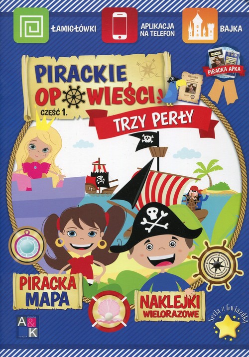 Piraci, smoki, syreny, zaginione skarby, zaczarowane królestwo, dalekie wyprawy - jednym słowem piękna, klasyczna baśń, przygotowana pod okiem doświadczonego pedagoga, a ponadto: aplikacja na telefon, rozwijające intelekt łamigłówki oraz duża ilość przepięknych, wielorazowych naklejek, wspierających kreatywność i wyobraźnię dziecka, to seria edukacyjnych książeczek i kolorowanek ""Pirackie opowieści"".