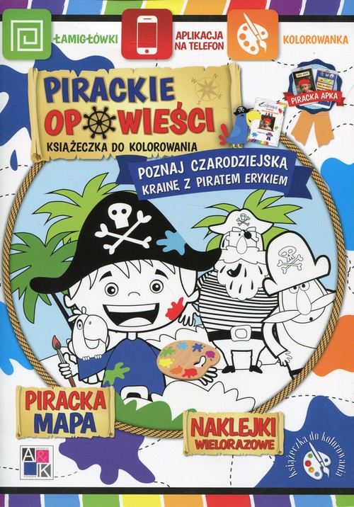Piraci, smoki, syreny, zaginione skarby, zaczarowane królestwo, dalekie wyprawy - jednym słowem piękna, klasyczna baśń, przygotowana pod okiem doświadczonego pedagoga, a ponadto: aplikacja na telefon, rozwijające intelekt łamigłówki oraz duża ilość przepięknych, wielorazowych naklejek, wspierających kreatywność i wyobraźnię dziecka, to seria edukacyjnych książeczek i kolorowanek Pirackie Opowieści.