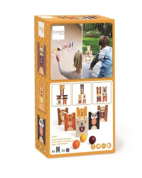 Drewniana gra zręcznościowa to wspaniała zabawa dla wszystkich wielbicieli zabaw ruchowych. Turlaj piłkę tak, aby strącić jak najwięcej drewnianych figur ze zwierzętami. Strąć ich jak najwięcej i zdobądź jak najwięcej punktów. Możesz ustawiać wieżę lub klasycznie jak do gry w kręgle.