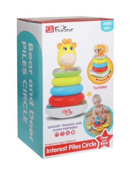 Kolorowa, plastikowa piramidka z żyrafką. Do sortowania i układania. Jedno kółko posiada również funkcję grzechotki. Piramidka rozwija zdolności motoryczne, słuchowe i wzrokowe malucha, a także umiejętność logicznego myślenia. Dla dzieci powyżej 6 miesiąca życia.