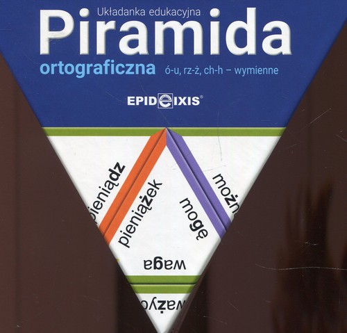 Piramida to wspaniałą zabawa połączona z nauką, ponieważ rozwija u dziecka zdolność do myślenia i zapamiętywania, uczy wytrwałości, wzmacnia koncentrację i skutecznie pomaga przezwyciężyć trudności w procesie uczenia się. Budowanie piramidy jest proste i odbywa się na zasadzie gry w domino, w efekcie rozwiązania wszystkich zadań otrzymujemy imponującą piramidę. Piramida ortograficzna P2 to kontynuacja Piramidy P1, zawarty materiał ćwiczeniowy utrwala poznane zasady ortograficzne dzięki zastosowaniu przykładów z : ó, u, rz, ż, ch, h wymiennych. Stanowi wartościową pomoc w nauce reguł pisowni języka polskiego. Dzięki nauce poprzez zabawę dzieci szybko przyswajają tak trudne reguły ortograficzne. W tej pomocy dzieci na podstawie 30 zadań uczą się prawidłowej pisowni wyrazów z ó, u, rz, ż, ch, h - wymiennej. W zestawie znajduje się 25 trójkątów.