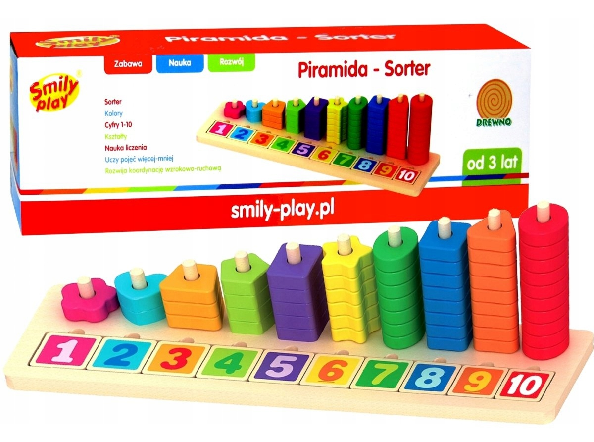 Układanka pomoże dziecku w nauce liczenia od 0 do 9 oraz rozróżnianiu kolorów i kształtów.