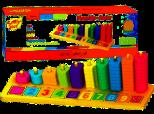 Składa się z 55 kolorowych figur o różnym kształcie i 10 płytek z cyferkami.