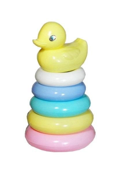 Plastikowa piramidka z kaczuszką. Do sortowania i układania. Rozwija zdolności motoryczne i wzrokowe malucha. Dla dzieci powyżej 18 miesiąca życia.Produkt zapakowany w worek z siateczki.
