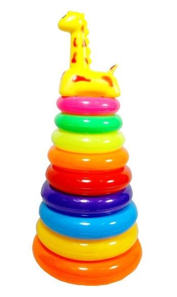 Układanka piramida z żyrafą. Pomoże rozwinąć u dziecka zdolności motoryczne i spostrzegawczość. Dla dziecka powyżej 18 miesiąca życia.