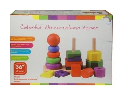 Zestaw 3 drewnianych piramidek do układania dla młodszych dzieci. Każda piramidka ma różny kształt klocków. Zabawka nauczy dzieci rozpoznawać kształty i kolory, a także logicznego myślenia. Zabawka zapakowana w kartonowe opakowanie. Podane wymiary są wymiarami opakowania. Zabawka przeznaczona dla dzieci od 12 miesiąca życia.