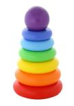 Kolorowa piramidka z siedmioma obręczami do nakładania, wysokość 24 cm. Zabawka dla dzieci od 1 roku życia.