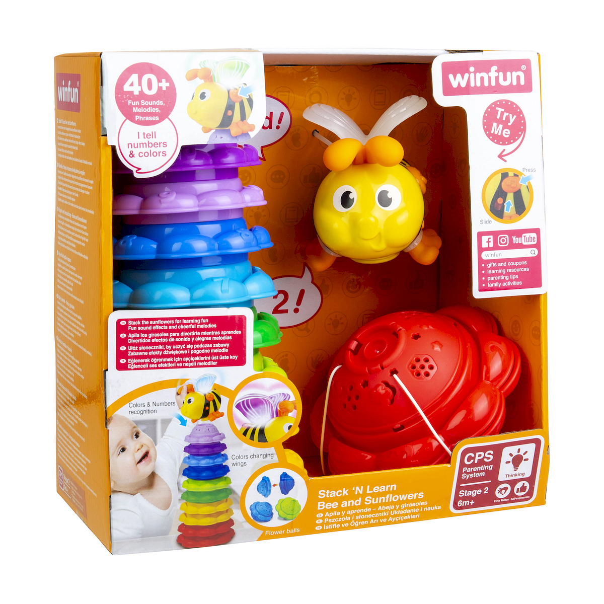 Piramidka Pszczółka jest uroczą zabawką skierowaną do dzieci powyżej 6 miesiąca życia. Pszczółka mówi po polsku spokojnym, dziecięcym głosem. Włącz, aby usłyszeć ponad 40 odgłosów, na które składają się wesołe melodie, cyfry i kolory. Ta Pszczółka jest wyjątkowa, jest bardzo inteligentna, a swoją wiedzą dzieli się z dzieckiem.