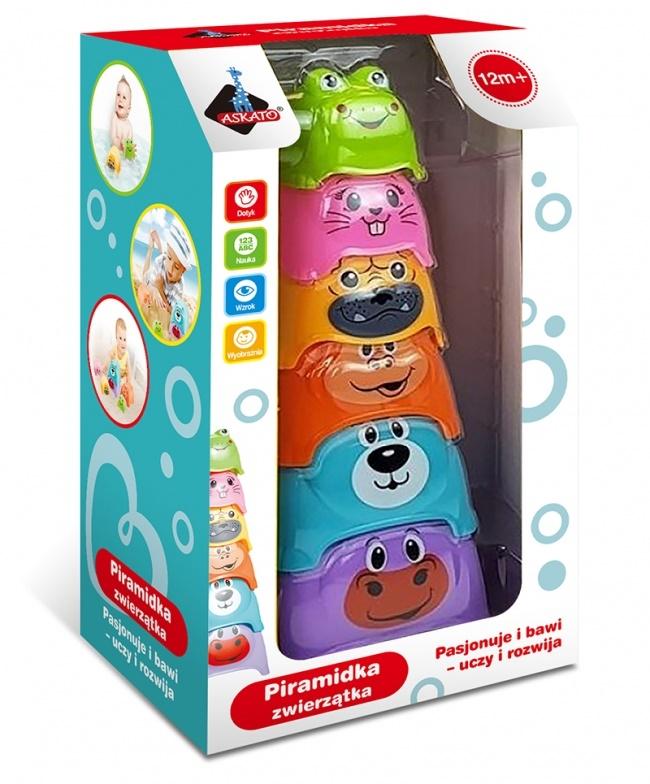 Piramidka składa się z 6 kolorowych zwierzątek.